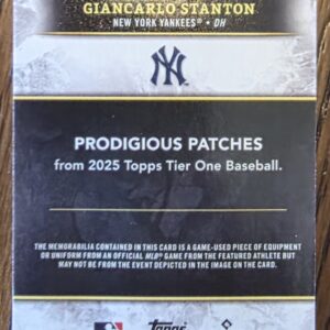2025 Topps Tier One Giancarlo Stanton Prodigious Patches Relic /10