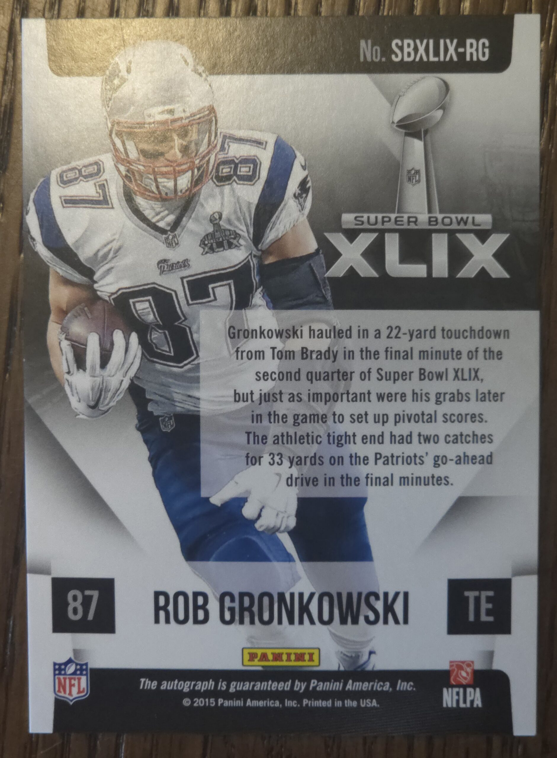2015 Panini Rob Gronkowski Auto RARE CARD This card came out of the factory Team Set where you usually get a common card of everyone on the team.
