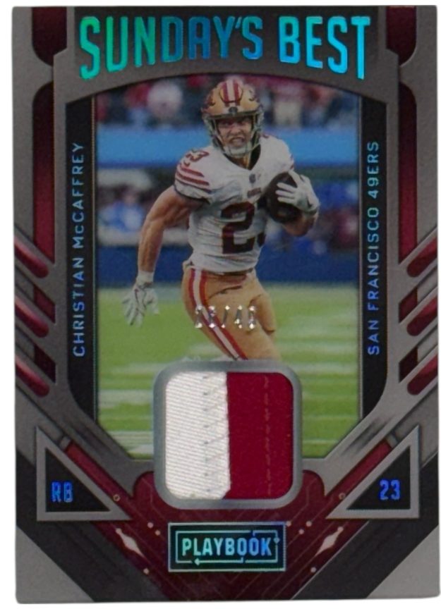 2022 Panini Playbook Christian McCaffrey Sunday’s Best Relic Card 26/49