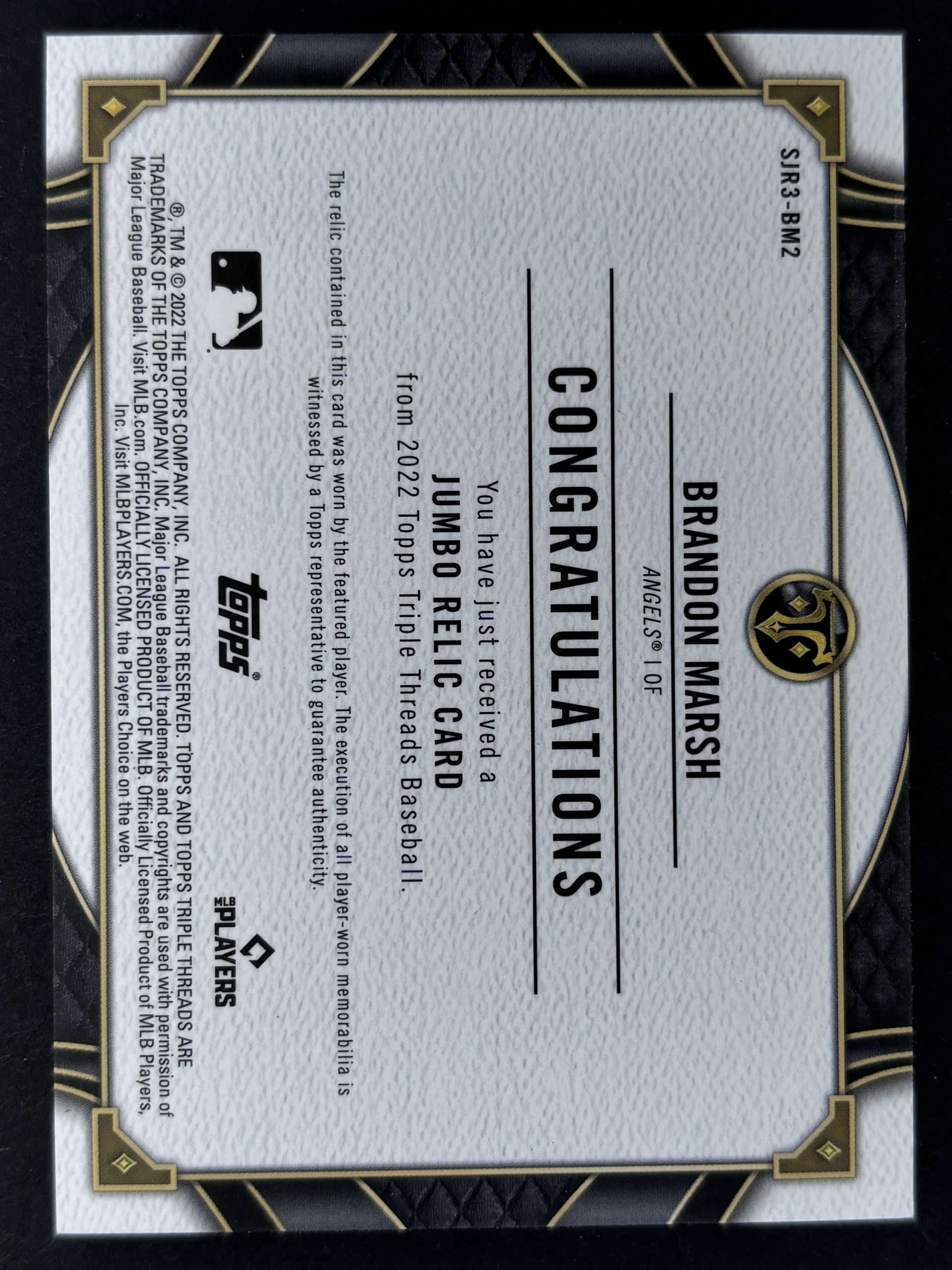 2022 Topps Triple Thread Brandon Marsh Jumbo Relic RC 16/27