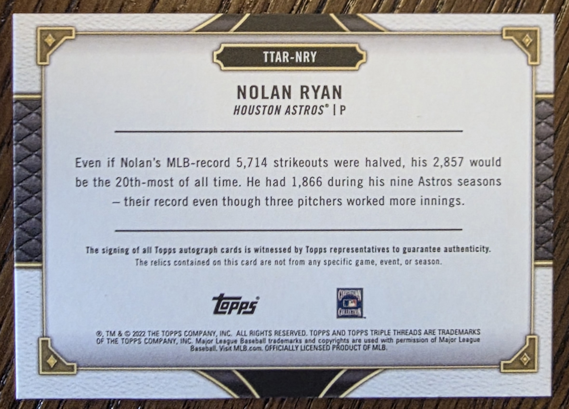 2022 Topps Triple Threads Nolan Ryan Above & Beyond Auto Relic /27