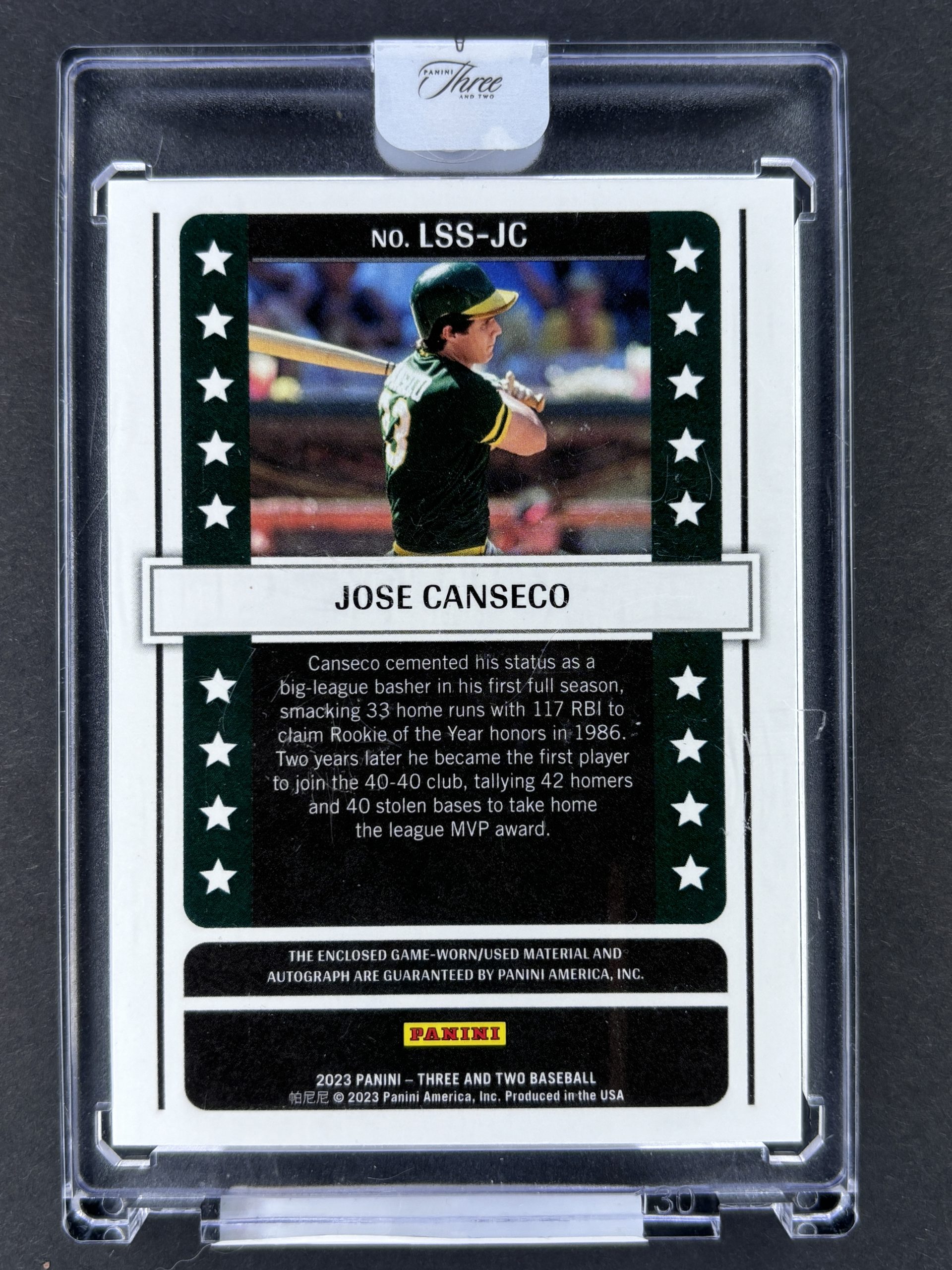 2023 Panini Three and Two Jose Canseco Auto/Swatch 18/25