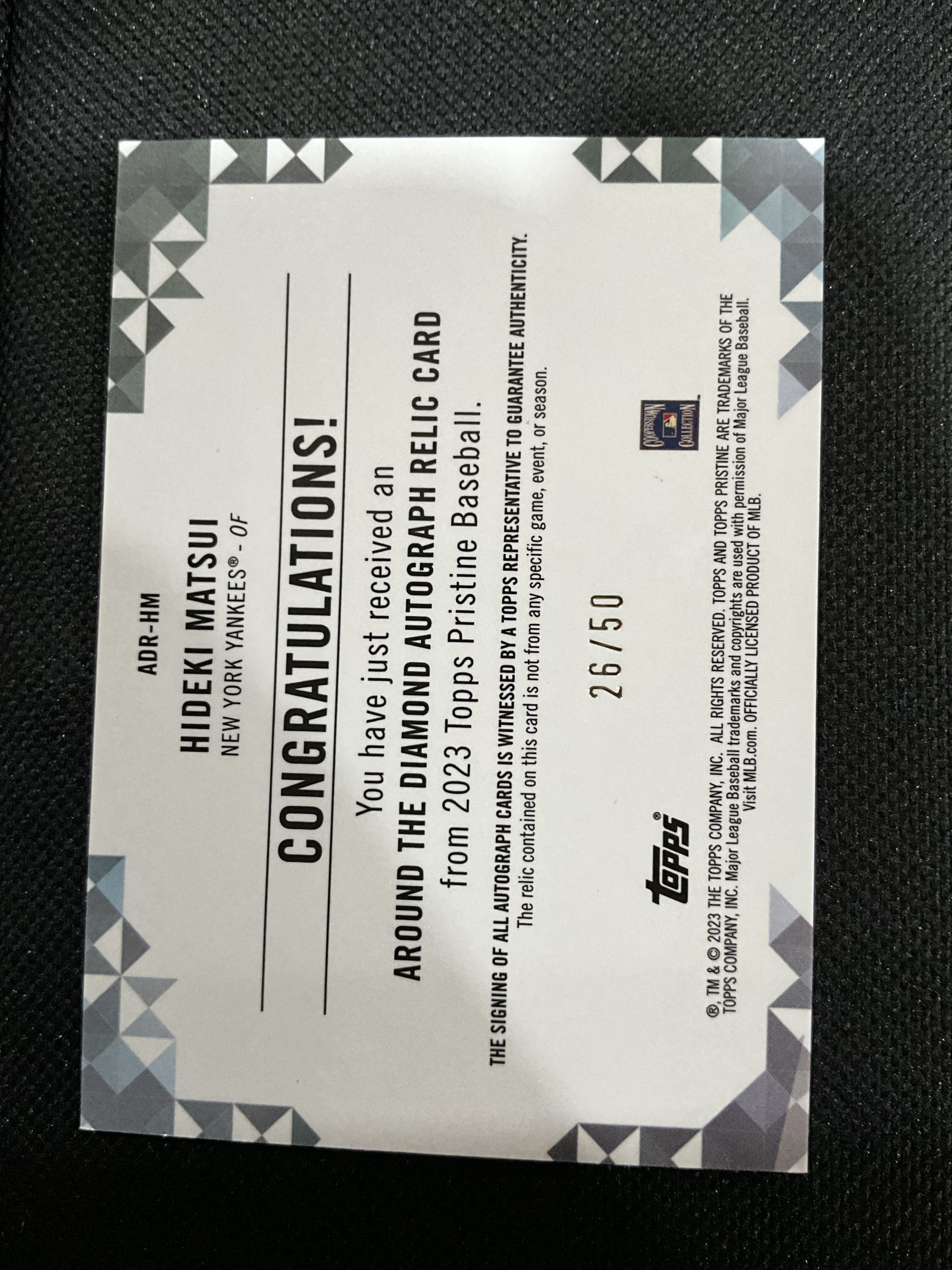 2023 Topps Pristine Around the Diamond Hideki Matsui relic autograph 26/50