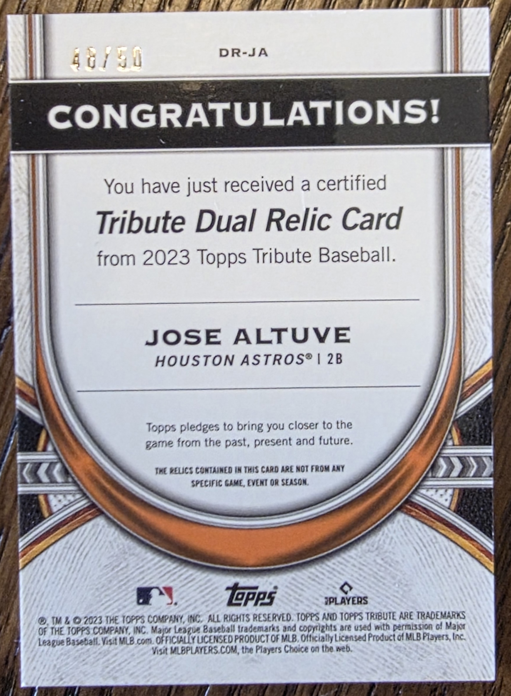 2023 Topps Tribute Jose Altuve Dual Relic Purple
