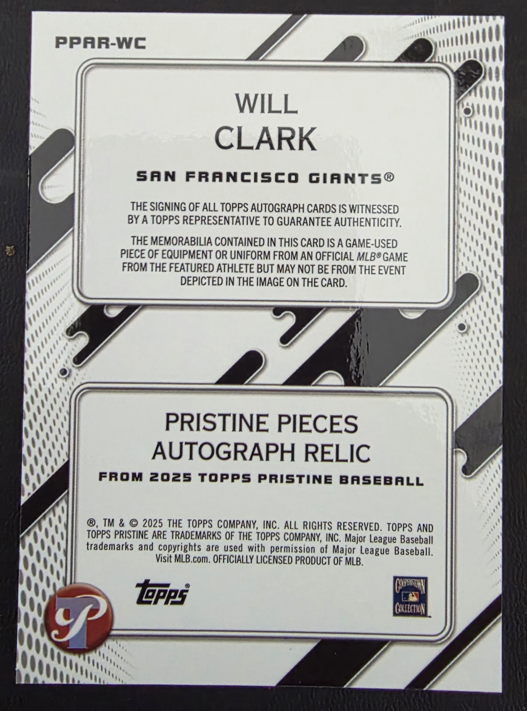 2025 Topps Pristine Will Clark Auto Mem PPAR-WC