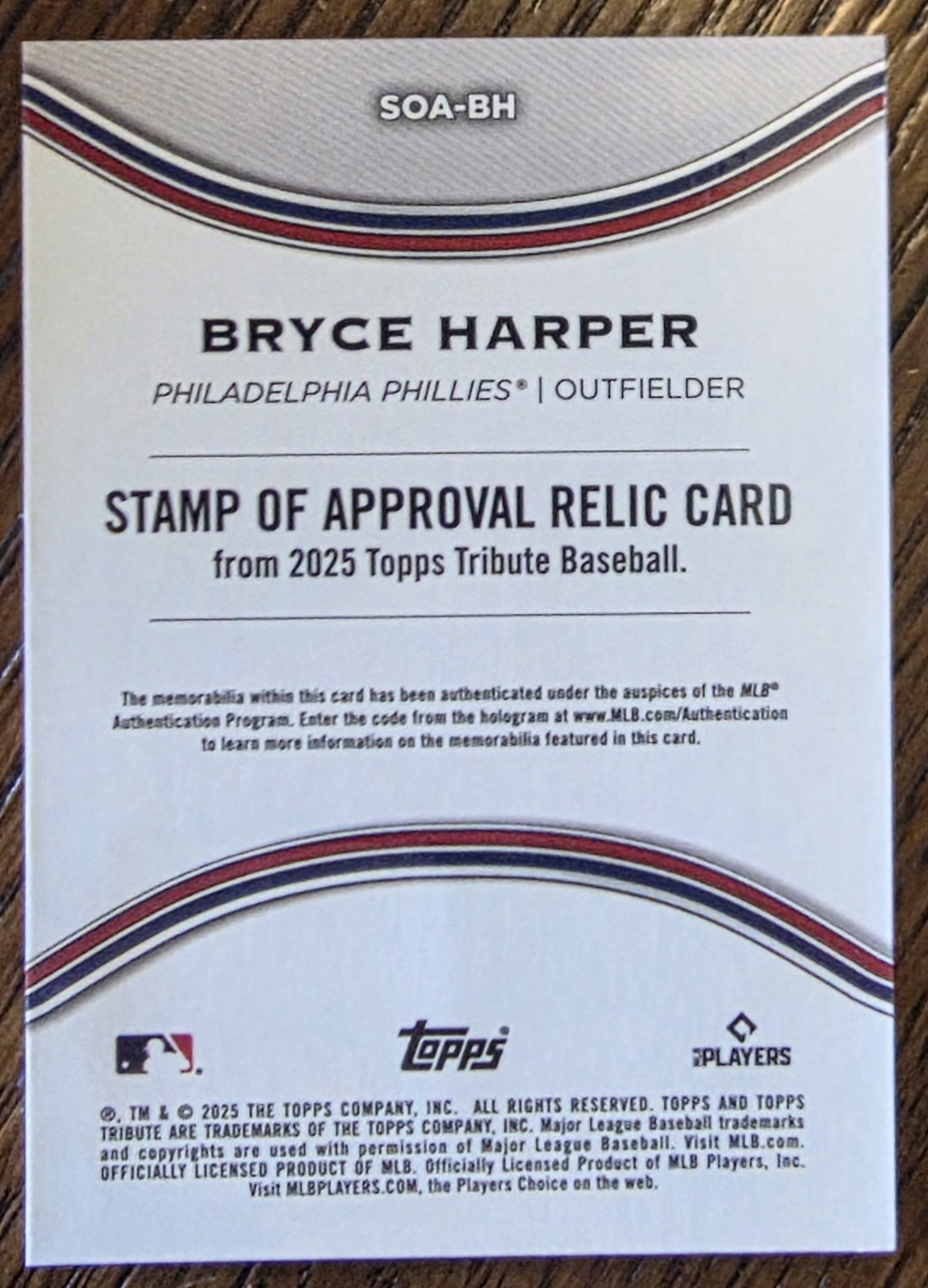 2025 Topps Tribute Bryce Harper Stamp of Approval Relic /150