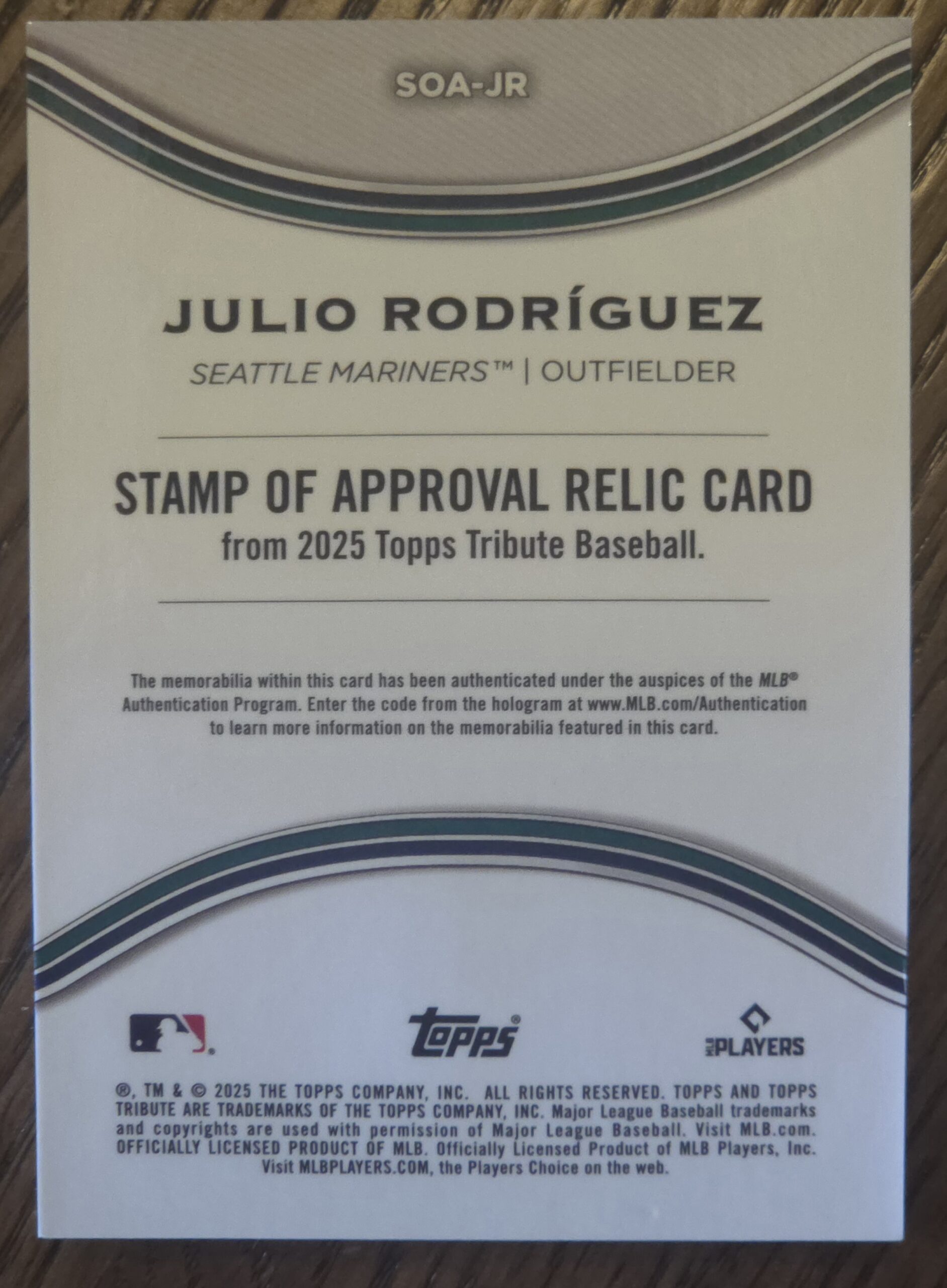 2025 Topps Tribute Julio Rodriguez Blue Stamp of Approval relic /150