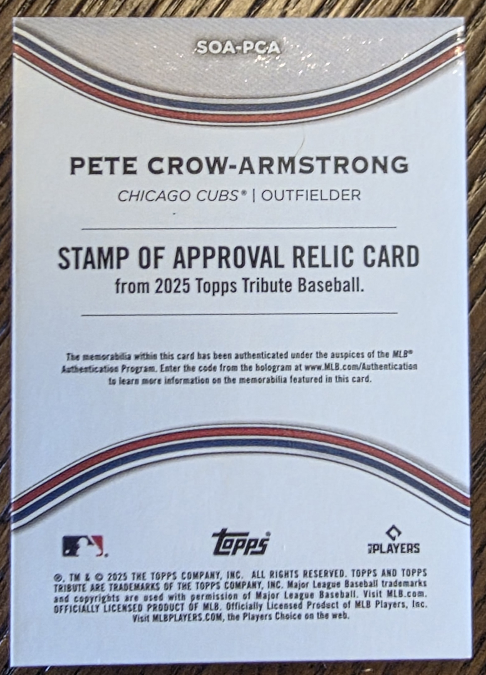 2025 Topps Tribute Pete Crow- Armstrong Stamp of Approval /150