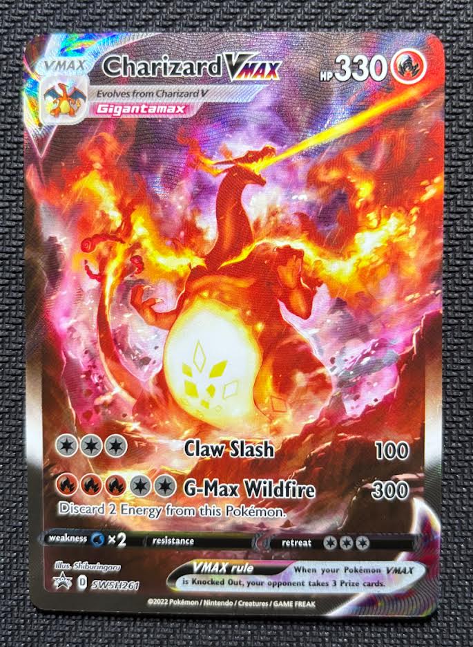 A beautiful Charizard Vmax promo card for any collector for their personal collection, quick sell or trade.